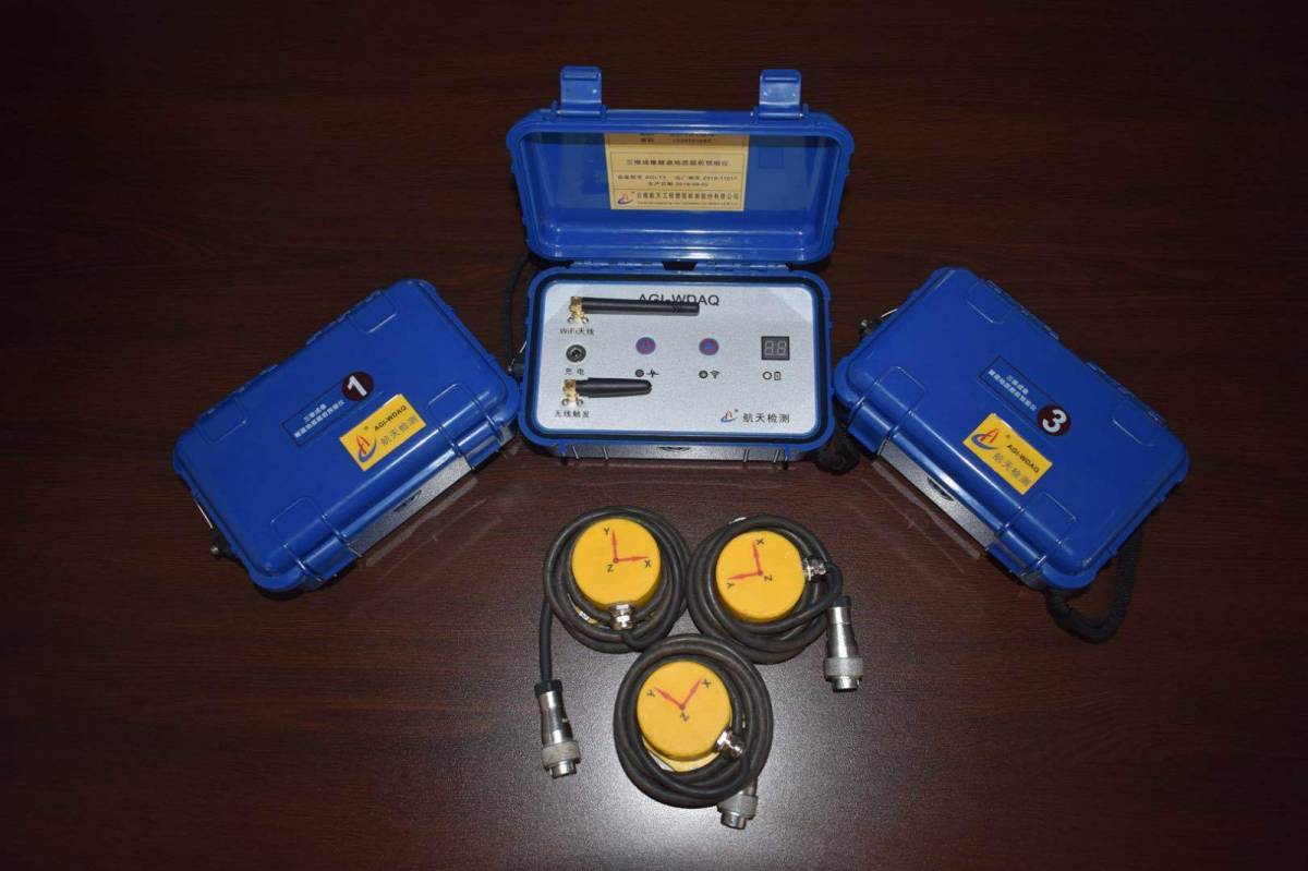 产品介绍:AGI-T3三维成像隧道地质超前预报仪基于地震波仿真分析、三点定位理论;应用二维滤波去噪、波速扫描分析与无线通信等技术,实现地震波信号快速采集和纵横波直接三维成像。基本原理:AGI-T3的基本原理与地震反射方法相似,是一种多波多分量反射地震勘探的地球物理方法。现场工作是在隧道内左、右边墙各设多个震源点,然后用人工锤击方式(或使用炸药震源)激发弹性波,弹性波沿掌子面前方传播过程中,遇到断层面、岩溶等不良地质体,会产生反射与散射回波信号,然后被安置在隧道内的传感器所接收,根据回波信号走时和能量大小,应用三维成像技术可得出不良地质体空间分布位置和类型;同时应用速度扫描分析可测算出预报段岩体波速,为判定围岩级别提供重要依据。
